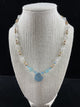 Russian Turquoise flat, Turquoise, Double Terminated Himalayan Quartz, Pearls, Czech cups, Quartz rounds, Swarovski Crystal, Czech Blue Flower Beads, Sterling Stardust Beads, Sterling Clasp.