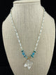 Rose Quartz Merkabah, Beryl (Morganite, Aquamarine, Helidor) chips, Lamp Glass, Rose Quartz Flowers, Pink Pearls, Swarovski Crystal, Seed Beads, Sterling Stardust Beads, Sterling Clasp.