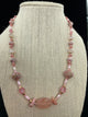 Morganite Oval Bead, Rose Quartz beads, Rhodochrosite slabs, Rice Pearls, Swarovski Crystal, Opal Hearts, Lamp Glass, Czech Vintage rose caps, Seed Beads, Sterling Stardust Beads, Sterling Clasp.