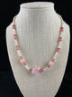 Beryl chips (Beryl is Morganite, Aquamarine & Heliodor), Shell Roses, Pink Pearls, Lamp Glass, Swarovski Crystal, Rose Quartz Beads, Seed Beads, Sterling Stardust Beads, Sterling Clasp.