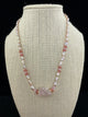 Morganite Natural Stone, Rose Quartz beads, Rice Pearls, Swarovsksi Crystal, Opal Hearts, Czech cups, Seed Beads, Sterling Stardust Beads, Sterling Clasp.