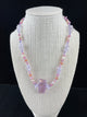 Madagascar Rose Quartz chunks, Lamp Glass, Rose Quartz rounds, Swarovski Crystal, Vintage Czech caps, Hearts, Seed Beads. Sterling Stardust Beads, Sterling Clasp.