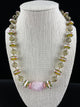 Agate Druzy Rounds, Lamp Glass, Focal Kunzite Crystal, Swarovski Crystal, Seed Beads, Czech glass disc spacer rondelles, Sterling Stardust Beads, Sterling Clasp.