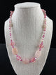 Madagascar Rose Quartz chunks, Lamp Glass, Rose Quartz rounds, Swarovski Crystal, Vintage Czech caps, Hearts, Seed Beads. Sterling Stardust Beads, Sterling Clasp.