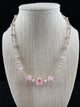 Rhodochrosite, Peach Moonstone, Pearls, Lamp Glass, Seed Beads, Swarovski Crystal, Sterling Stardust Beads, Sterling Clasp.