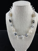 Web Agate, Swarovski Crystal, Gold Heishi Pearls, Swarovski Crystal, Sterling Stardust Beads, Sterling Clasp.