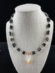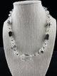 Quartz Crystal Focal Stone, Black Tourmaline, Lamp Glass, Quartz Crystal Chips, Vintage Swarovski Crystal, Seed Beads, Egyptian Crystal, Sterling Stardust Beads, Sterling Clasp.