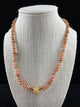 Lithiophilite, Carnelian Rounds, Orange Seed Beads, Gold Pearls, Czech glass caps, Swarovski Crystal, Sterling Stardust Beads, Sterling Clasp.